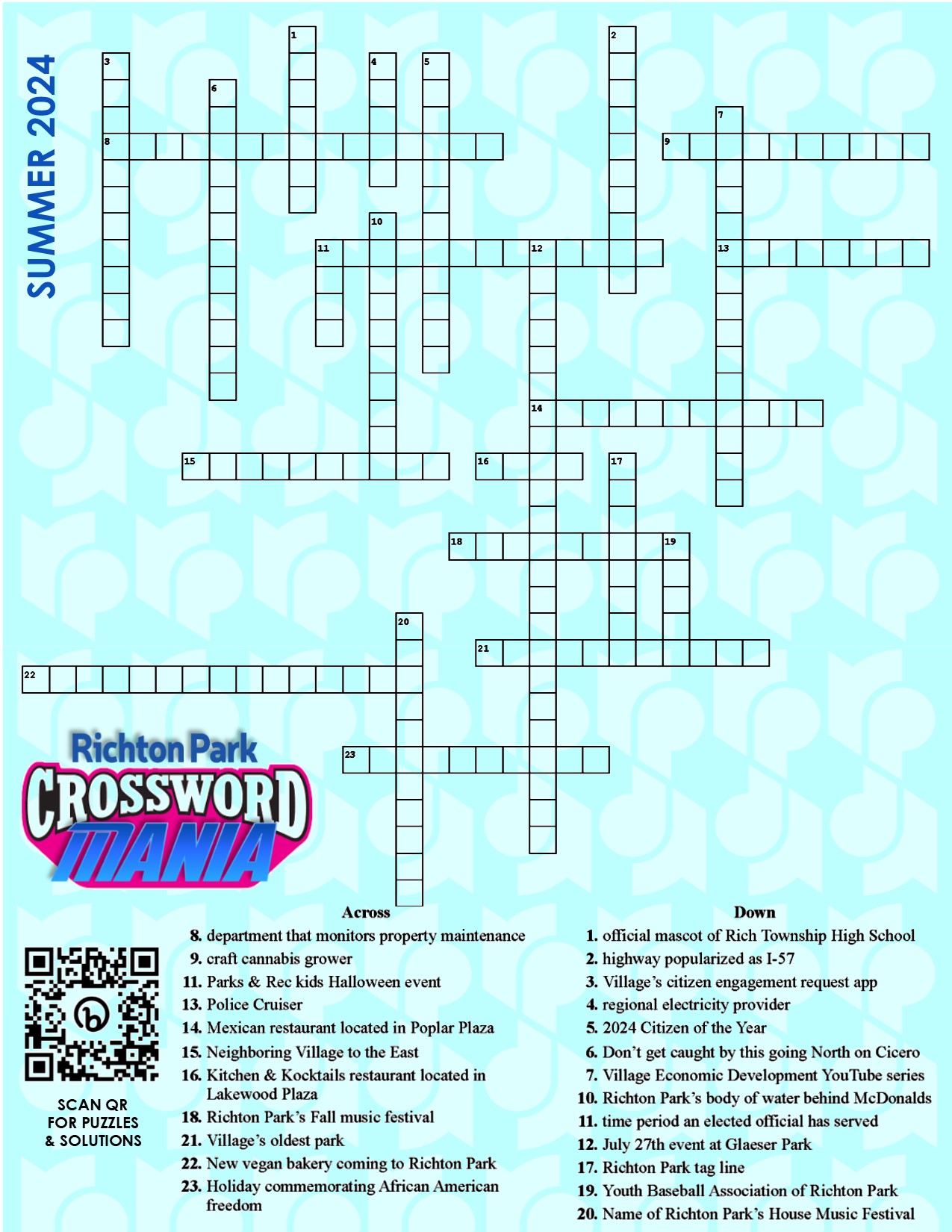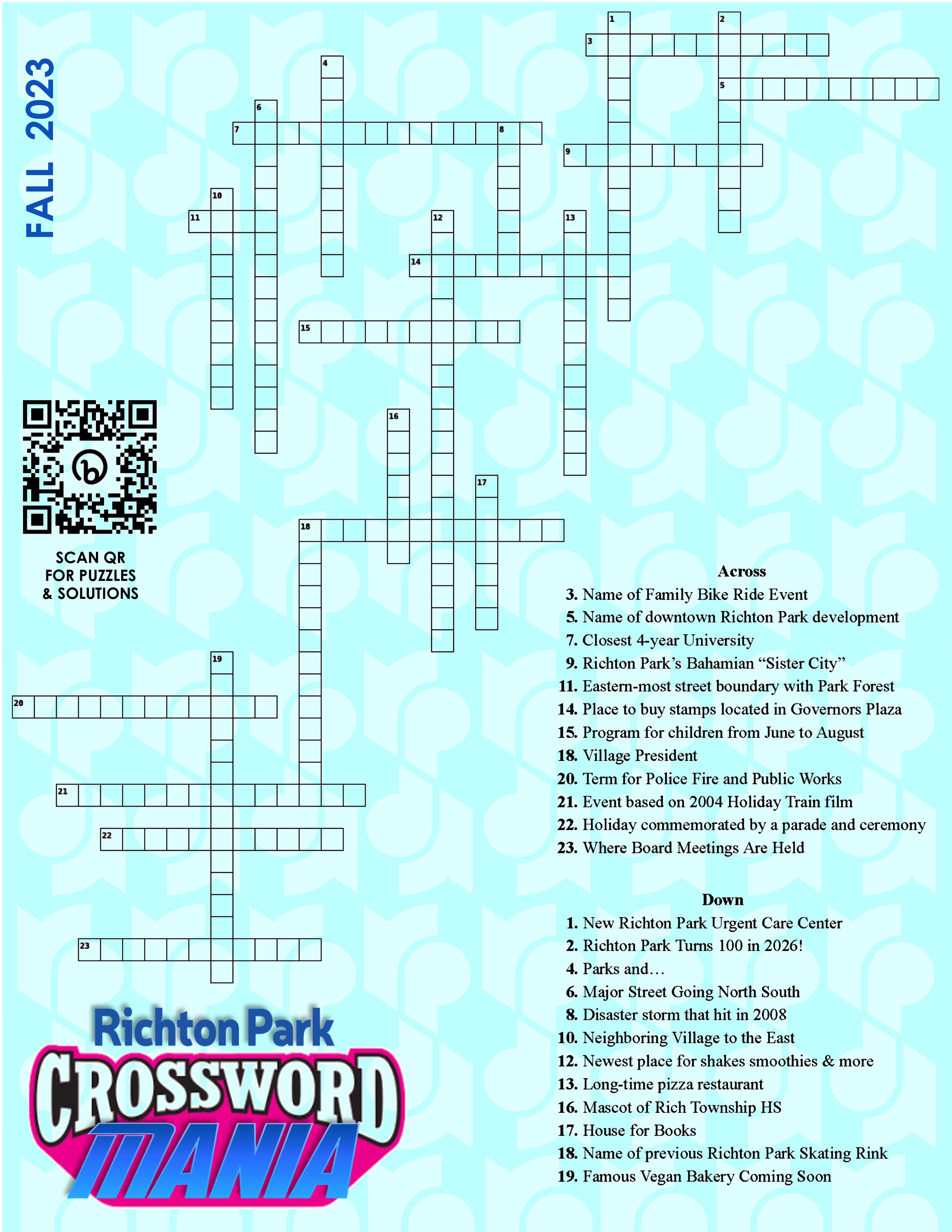 Each Season, (Quarterly) we create a special, Richton Park specific Crossword Puzzle just for you!