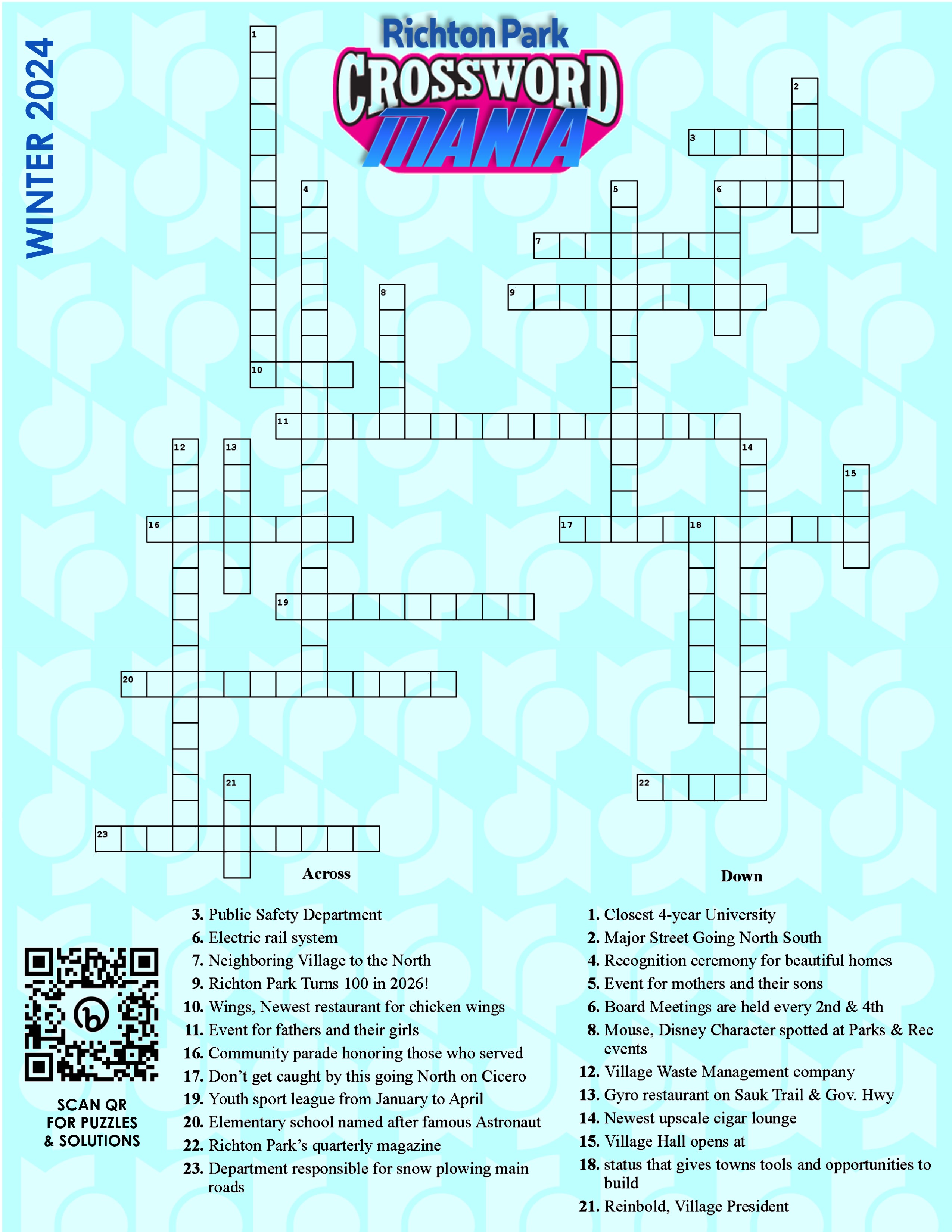 Each Season, (Quarterly) we create a special, Richton Park specific Crossword Puzzle just for you!